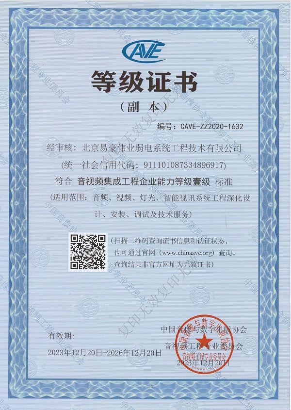 音視頻集成工程企業(yè)資質(zhì)壹級