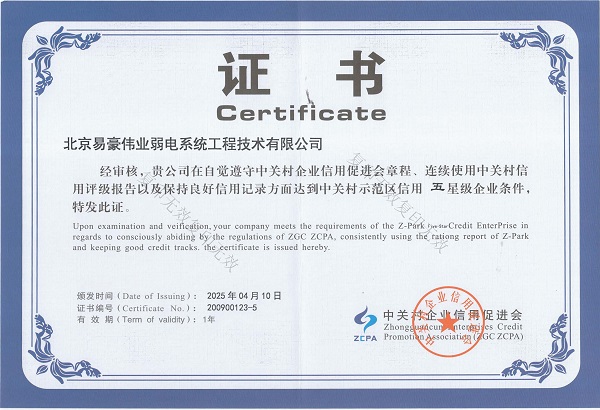 中關(guān)村示范區(qū)信用五星級企業(yè)