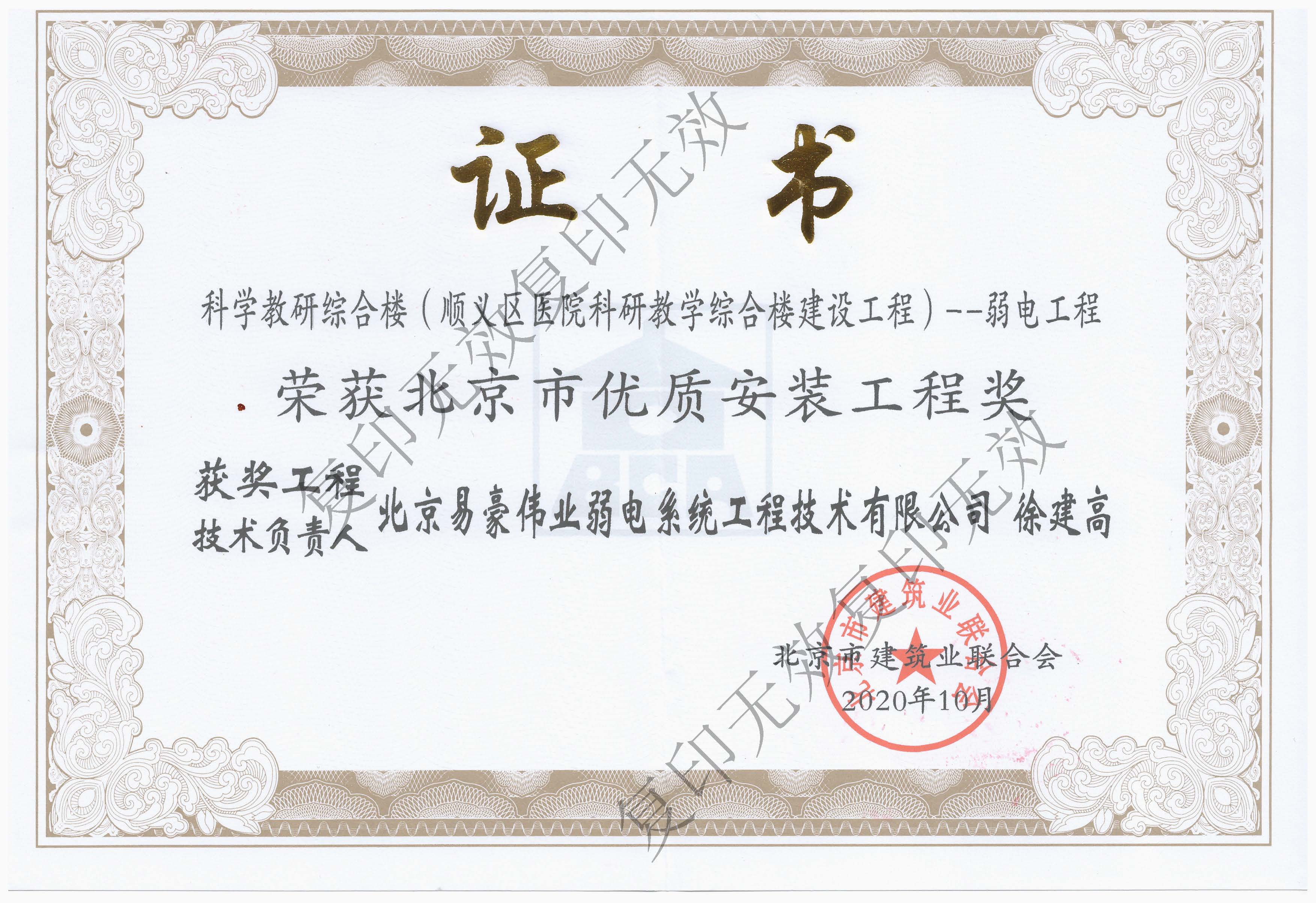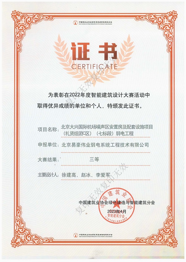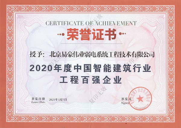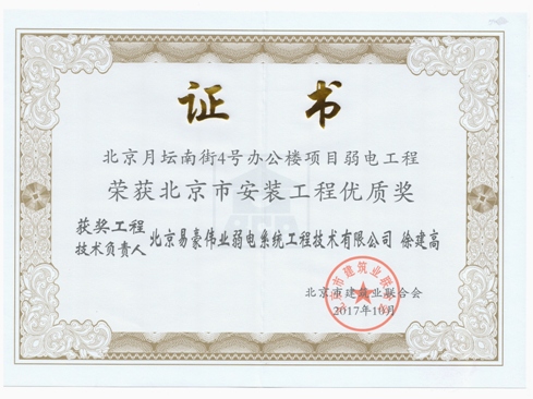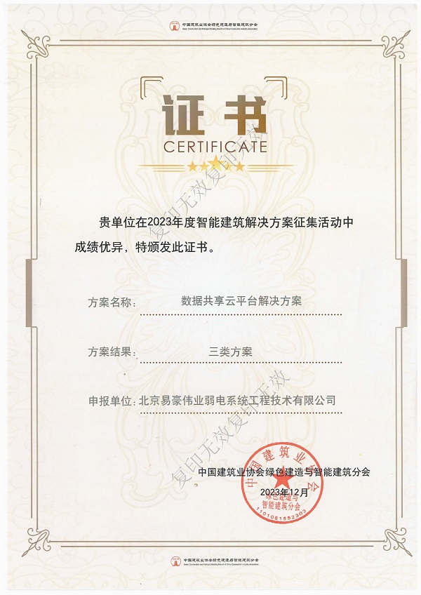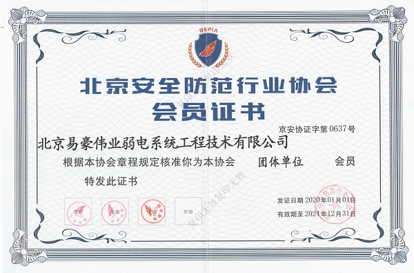 北京市智能建筑協(xié)會常務(wù)理事單位證書