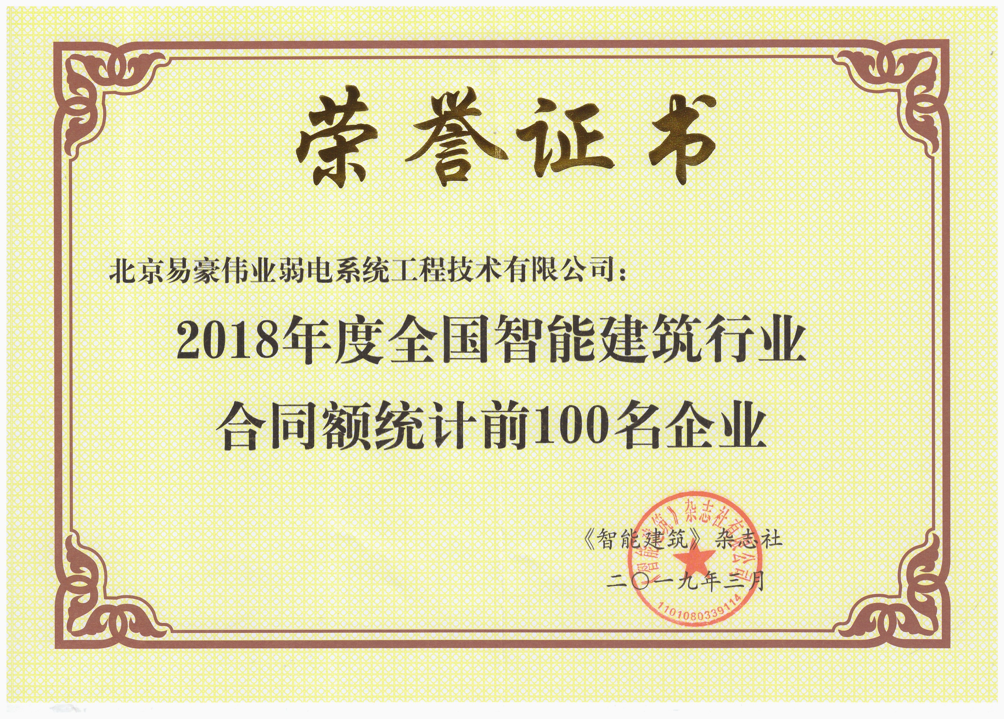 全國智能建筑行業(yè)合同額統(tǒng)計前100名企業(yè)