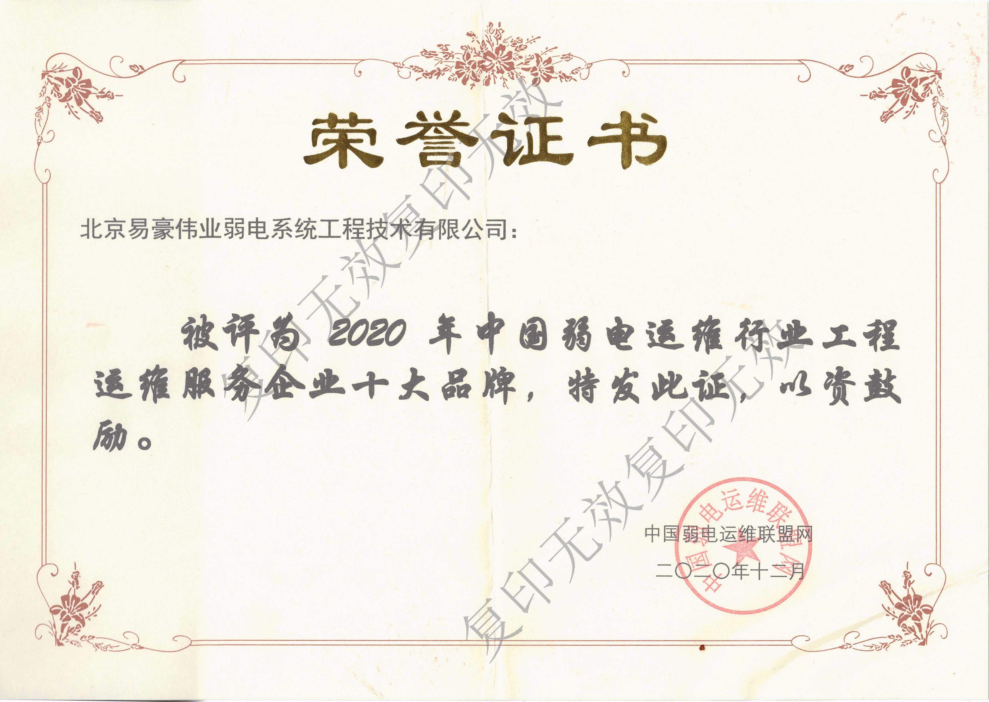 2020年中國弱電運維行業(yè)工程運維服務(wù)企業(yè)十大品牌